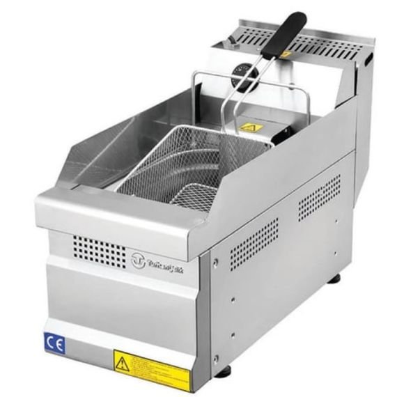 Friteuse à gaz professionnelle 8 litres en acier inoxydable avec thermostat réglable de 100 à 180°C. Idéale pour restaurants, snacks et cuisines professionnelles en Tunisie.
