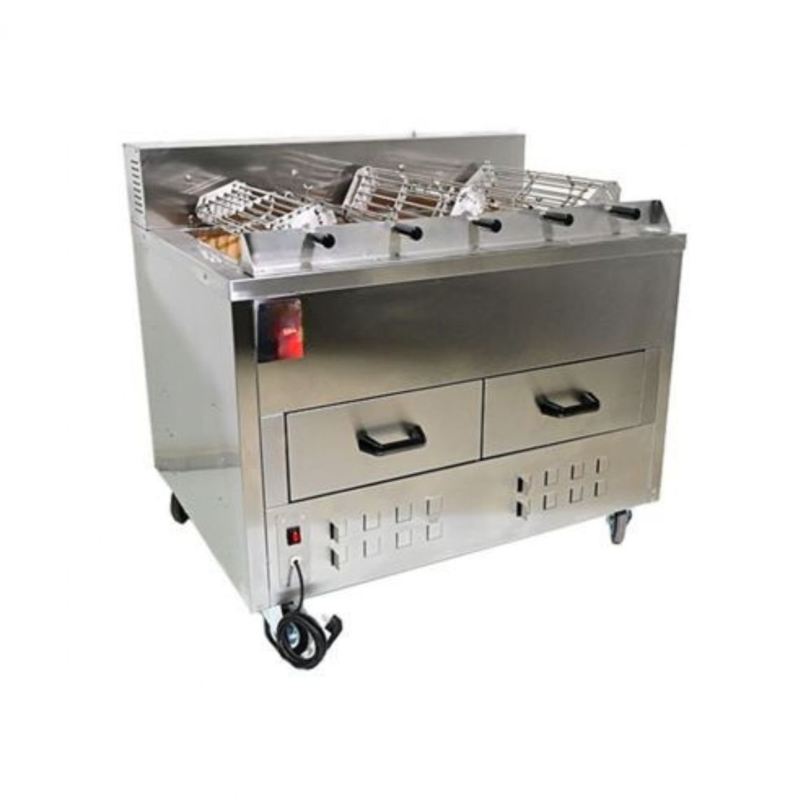 La rôtissoire à charbon 5 broches professionnelle est conçue pour les restaurants, rôtisseries et snacks qui souhaitent offrir le goût authentique du poulet rôti au charbon de bois. Grâce à son système de cuisson traditionnel, elle permet d’obtenir une viande savoureuse, dorée et parfumée.